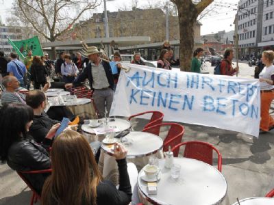 Bauerndemo vor der Migros Limmatplatz in Zürich. (Archivbild: Demo vom Internationalen Bauernkampftag im April)