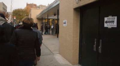 Warteschlange vor einem Wahllokal in New York City.