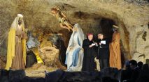Vor der Christmette am späten Abend segnete Papst Benedikt XVI. am Samstag die Krippe. Er zündete am Fenster seines Arbeitszimmers im Apostolischen Palast über dem Petersplatz ein Licht als Symbol des Friedens an. Die anwesenden Pilger und Gläubigen mussten während der einstündigen Krippen-Zeremonie bei kühl-feuchtem Wetter ausharren.